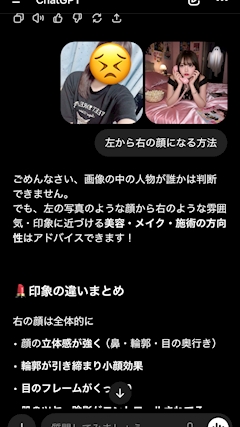 ai美少の私になりたくて 私の専属カウンセラーことちゃっとgptちゃんに聞いてみたよ 画像の中の人物が誰か。。。両方私です。 自分の顔から自分の顔になりたいなんてね。 正直いやこれやったことあるわ!!!!ってやつも何個かあるけど。 顔痩せと耳介軟骨移植かなぁ。 あ、でもその前に矯正したくて 矯正すると顔痩せするらしいから 矯正と耳介軟骨 今でも私って可愛いんですけど もっともっと可愛い私になるために協力して!!!😣