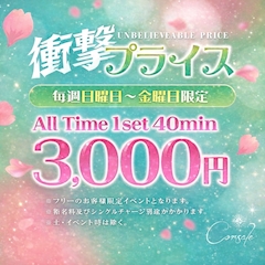 こんにちは😃 いつもありがとうございます😊 4月毎週日曜日から金曜日限定‼️ 1SET40分3000円のEVENTを行います❤️ 激安ですっ!!!! この機会にぜひコルサーレへ🥰 たくさんのご来店をお待ちしております☺️
