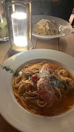 オシャレなイタリアン🇮🇹💃😌ご馳走様でした🥰美味しかった(,,•﹏•,,)🦐めちゃくちゃお腹いっぱい😚 初同伴ありがとう!!!!!🥹✨️オシャレなお店探してきてくれて何から何までありがとう🥲 そしてまさかのシャンパンまで🍾✴︎ .。コルサーレにいて良かったです☺️ ドレスがパツパツです😇😇😇 また会えるのを励みに頑張ります😙