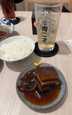 2週間ほど前に コルサーレの目の前にできた 居酒屋さんに行ってきました🎶 どのメニューも美味しかったですが 特に美味しかったのが 豚の角煮でした🐷 一食目だったので腹ペコで、 白米も頼んじゃいました🍚 やっぱりお肉と白米の 組み合わせは最高ですね.......❤️ キャストの女の子と3人で行きました! 楽しいし美味しいし安いし最高です⭐️